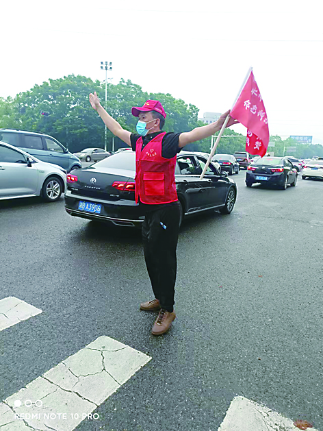 ▲志愿者现场指挥交通。 志愿者供图