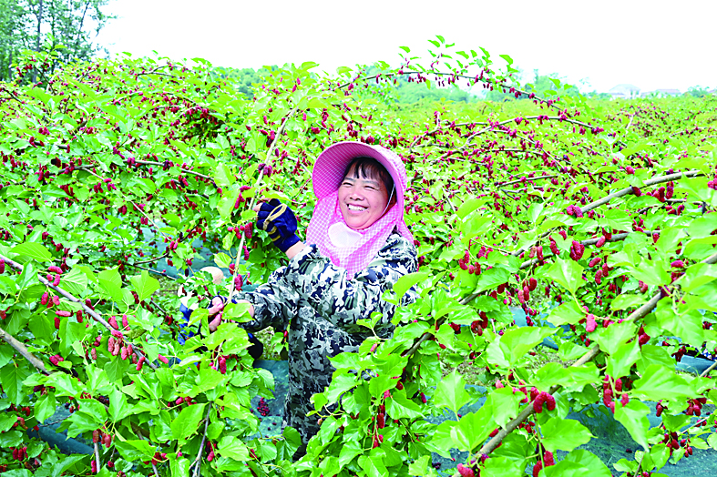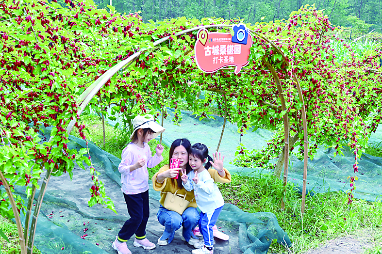 ▲游客们在古城桑葚园体验采摘。 李茂春 摄