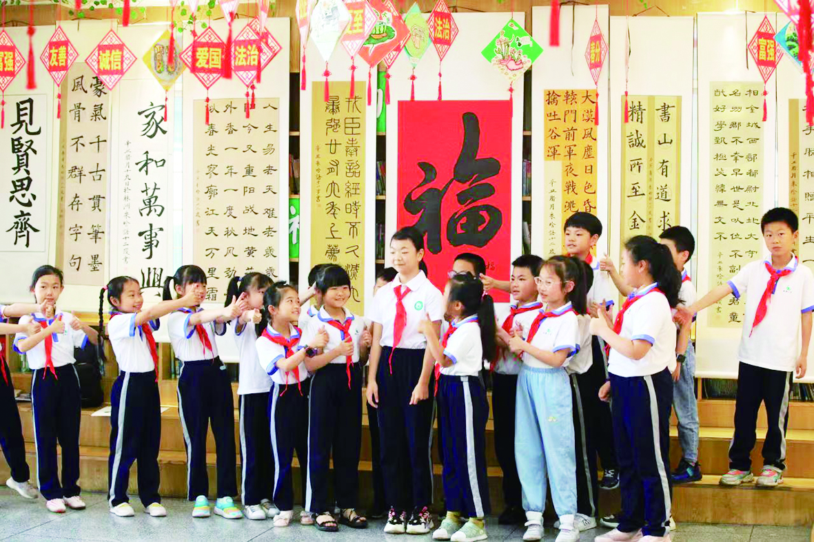 本报讯(株洲晚报融媒体记者/孙晓静)水墨丹青,童心向党。5月9日,白鹤小学举办了一场特殊的小型书法展,该校六年级学生朱晗语在毕业前夕,将近一年来创作的30幅软笔、硬笔书法作品展出,为学校建校二十周年献上真诚贺礼。