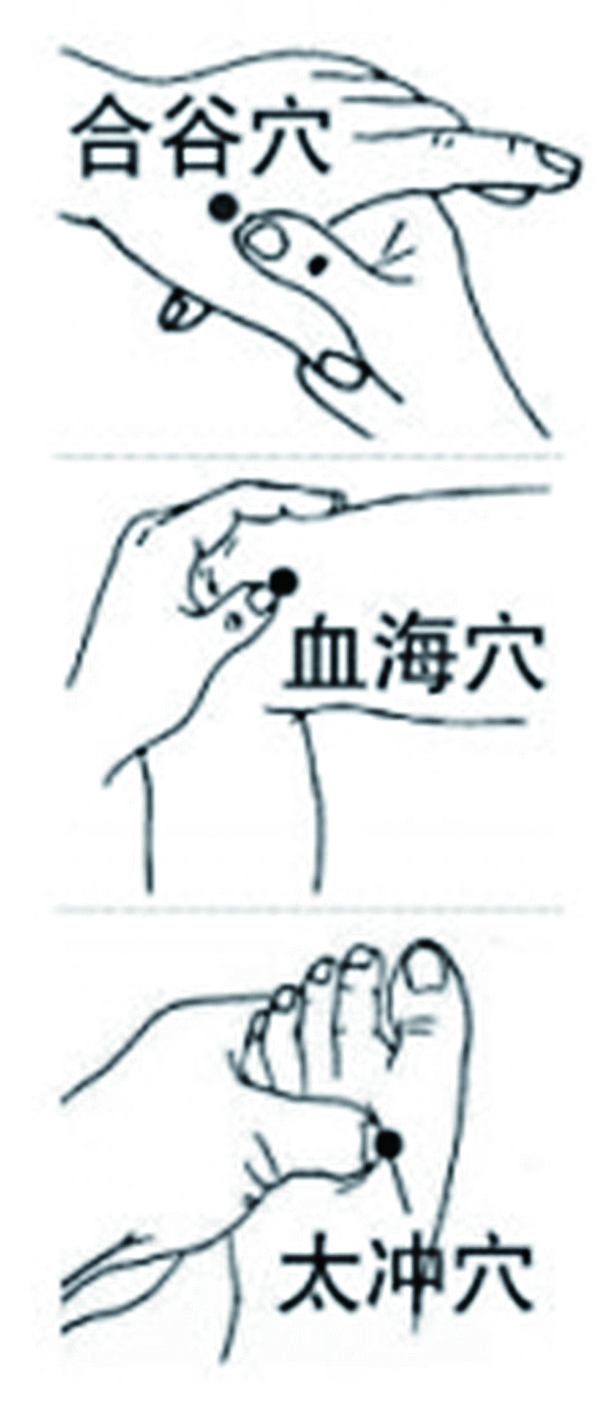 按摩合谷穴:此穴位于第二掌骨桡侧中点。有通经活络、促进气血运行的作用。