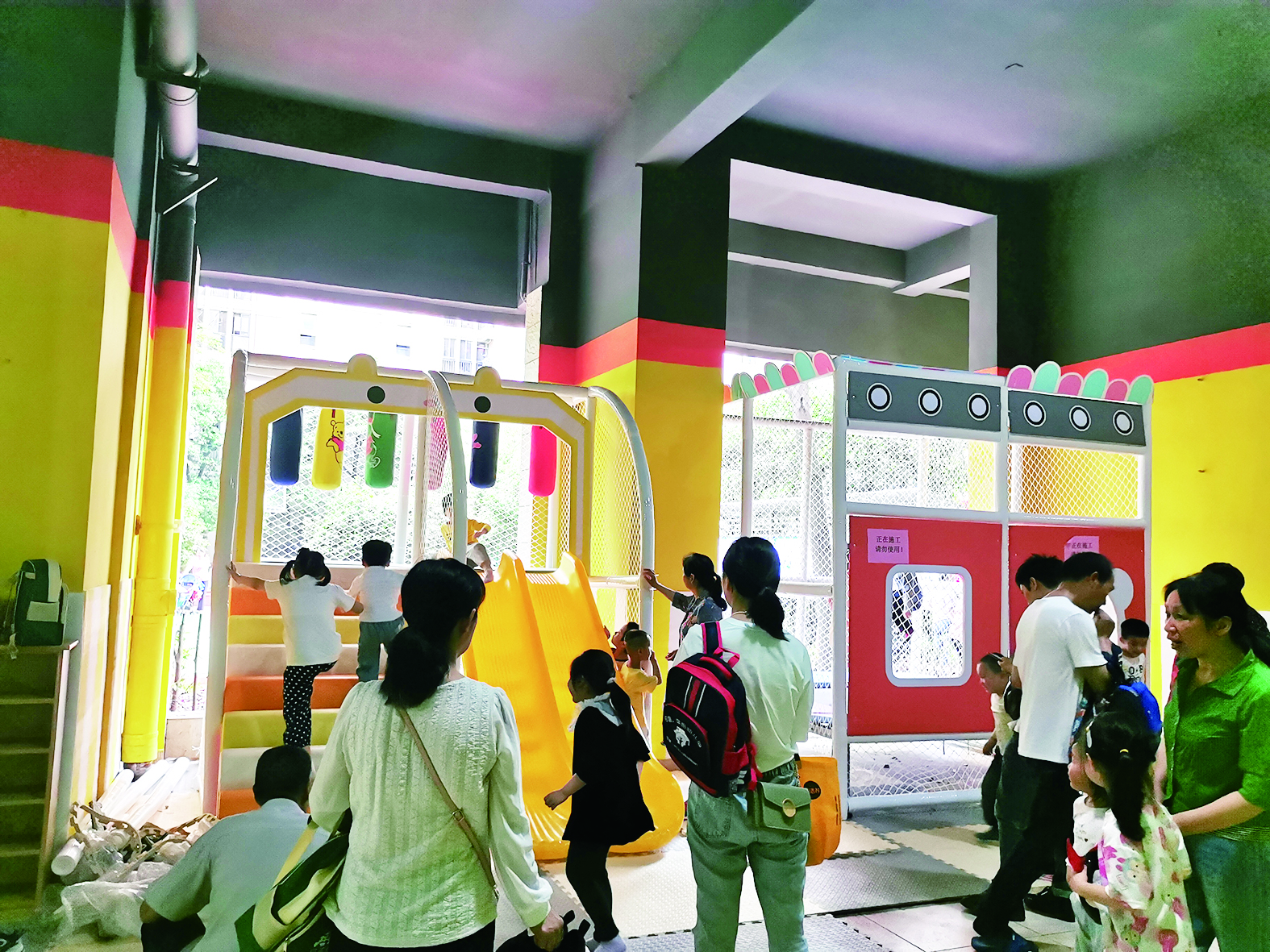 ◀泰山公馆架空层,小孩子爱玩“儿童游乐场”。 记者/谢嘉 摄