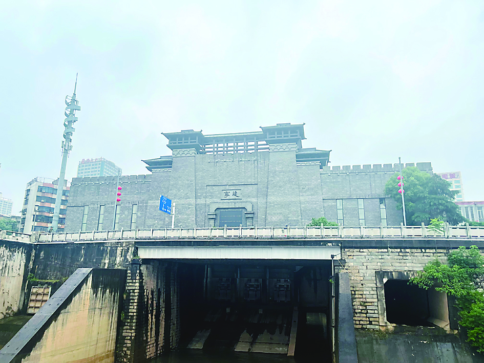 5月14日,伴着身侧郁郁葱葱的树木,沿着分袂亭往北走约百米,一座上书“建宁”的古城楼引人驻足细看,殊不知,这其实是一处正兢兢业业工作着的排渍泵站。
