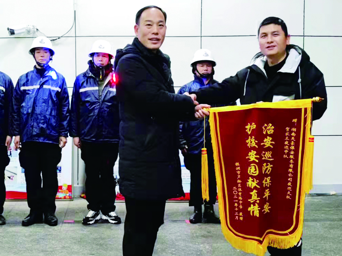 大队所属的贺家土夜巡中队,长期在体育路中学、贺家土中学校园门口及周边护校。每到学校晚自习下课的时侯,队员们都在校门口集结,分工合作坚守护校岗位,圆满完成安保任务。为此,贺家土中学负责人送来一面锦旗,为夜巡队员的工作作风点赞。建宁夜巡中队则在芦淞市场群周边值守。这些年来,队员不但守护附近平安,还给予夜市商户和群众力所能及的帮助。
