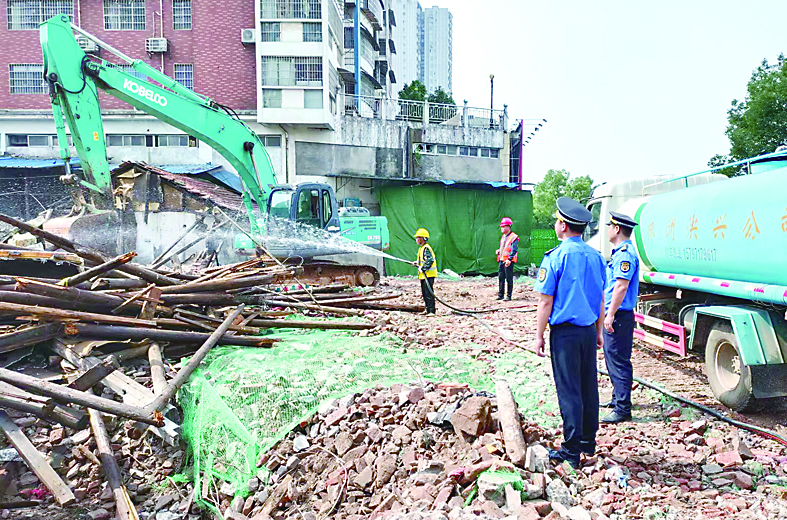 5月17日,芦淞区江南商城,施工人员正在对一处违法建筑进行拆除,拆除面积190余平方米。今年以来,该区已拆除违法建筑52处,拆除面积18194.61平方米。