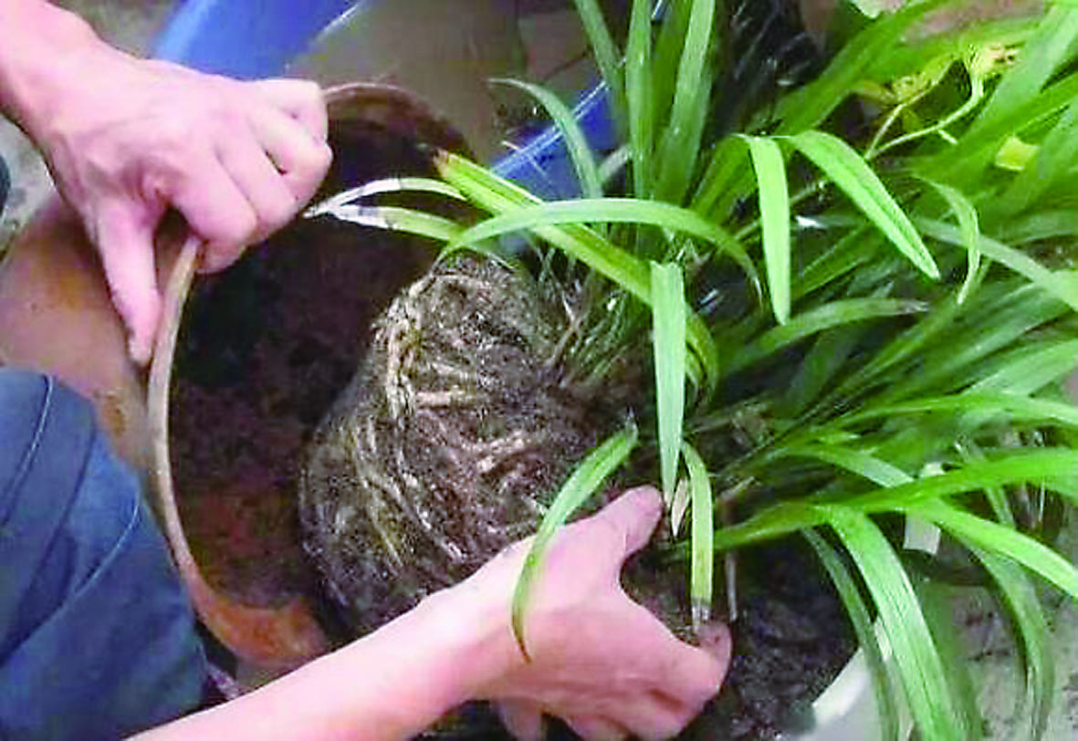 长出根球。给盆栽浇水时,观察一下根部。浇过水的情况下,很容易就能从花盆里取出植物,如果看到它的根部向下环形生长,这意味着现在花盆的空间已经不够大了。移栽前,先要把根球松散开,去掉部分旧土,以便吸收更多的营养。