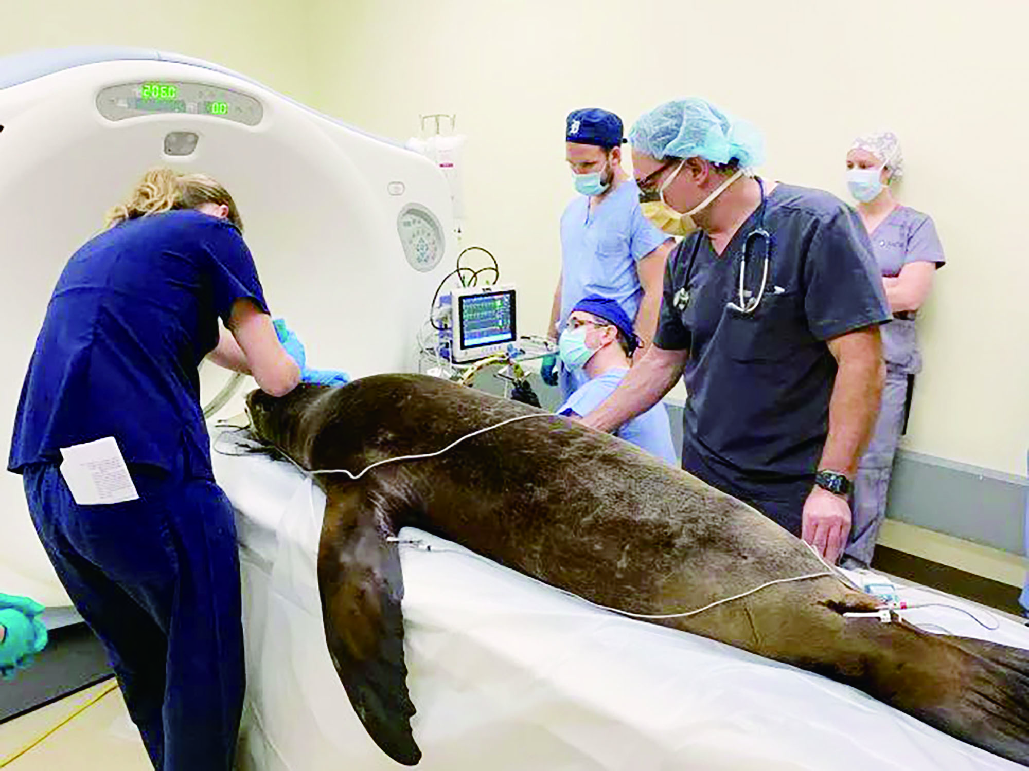 ▲科学家给海狮做手术,在它受损的海马体处植入了猪脑细胞。(网络供图)