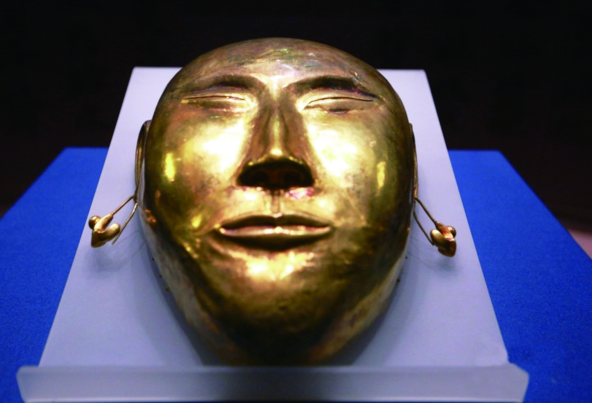 沈阳博物馆沈阳源流展厅展出的辽代金面具,含金量85%,堪称镇馆之宝。