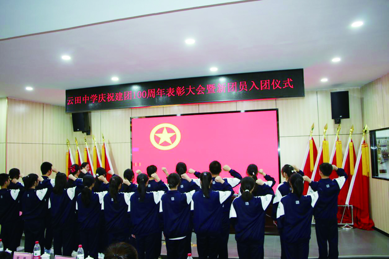 “我志愿加入中国共产主义青年团,坚决拥护中国共产党的领导,遵守团的章程……”5月17日,长郡云龙实验学校云田校区开展建团100周年表彰大会暨新团员入团仪式。面对着鲜艳的团旗,新老团员们共同宣誓,坚定初心,勇担团员之责任。