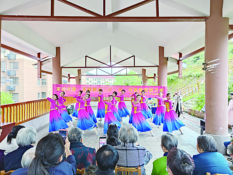 ▲学生志愿者为空巢老人表演节目。 通讯员供图