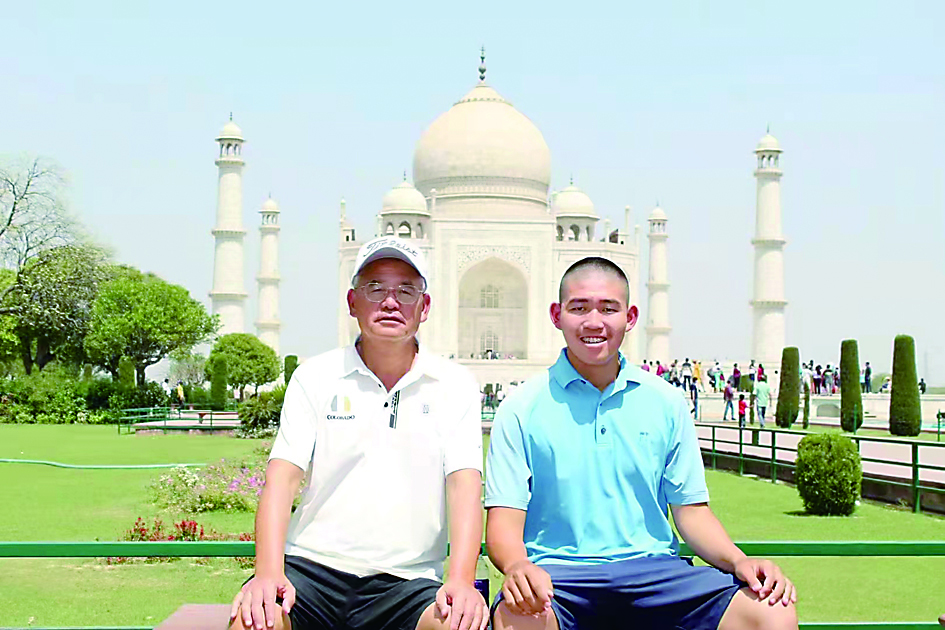 ▲陈顾新(右一)在印度打比赛之余,游览当地名胜。 受访者供图