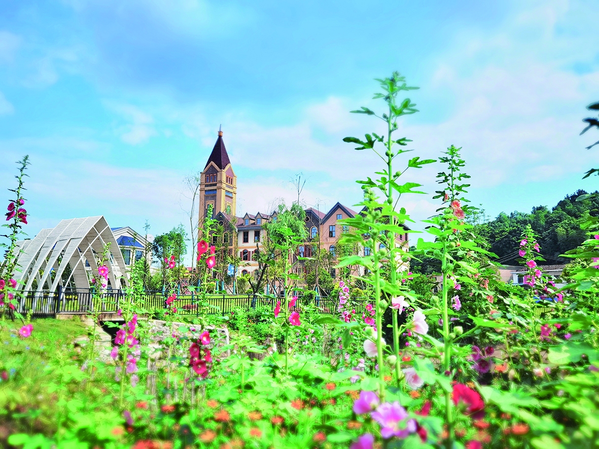 五月的青龙湾,繁花盛开,湛蓝的天空下,临风婀娜的一串红,夹杂着蝉鸣与蝶舞轻轻摇摆。