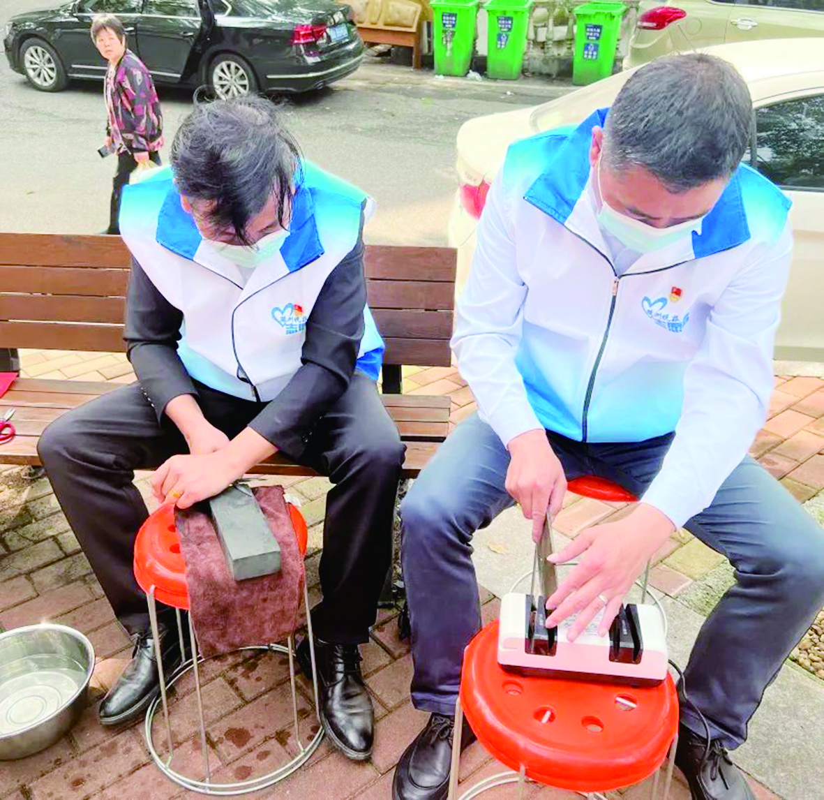家美物业志愿者提供了三项服务,分别是义剪、磨刀和修理小家电,个个摊位“生意”火爆。小家电修理是热门,志愿者忙得不亦乐乎,一上来便为一居民修好了电蚊拍。对于无法修理的物件,志愿者则耐心地告知原因。磨刀是便民服务最受欢迎的项目,两名志愿者两小时为居民磨了40把刀。