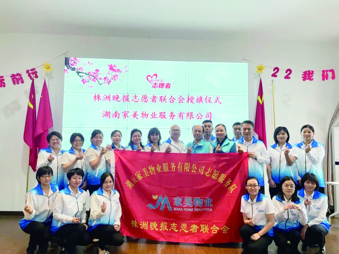 据悉,家美物业是株洲晚报志愿者联合会旗下的第13支志愿服务队。此前于5月9日,株洲市八中志愿服务队“加盟”株洲晚报志愿者联合会。