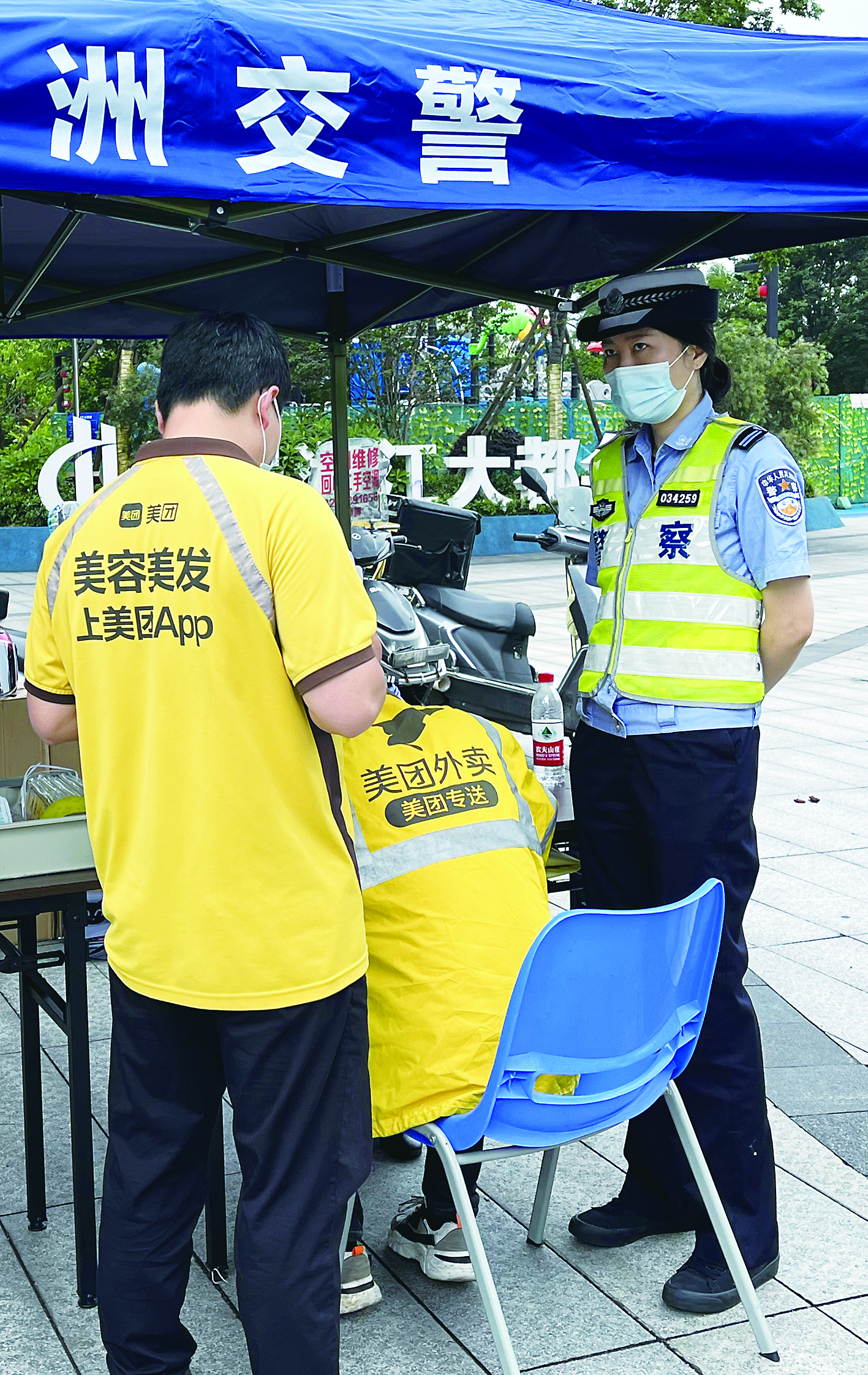 本报讯(株洲晚报融媒体记者/沈全华 通讯员/卜妍)“正愁着没时间给电动车上牌呢,你们就来了,感谢交警同志!”5月25日,芦淞区一群外卖小哥享受到交警送来的“外卖”上门服务,这些“外卖”不是别的,而是电动车临时牌照。