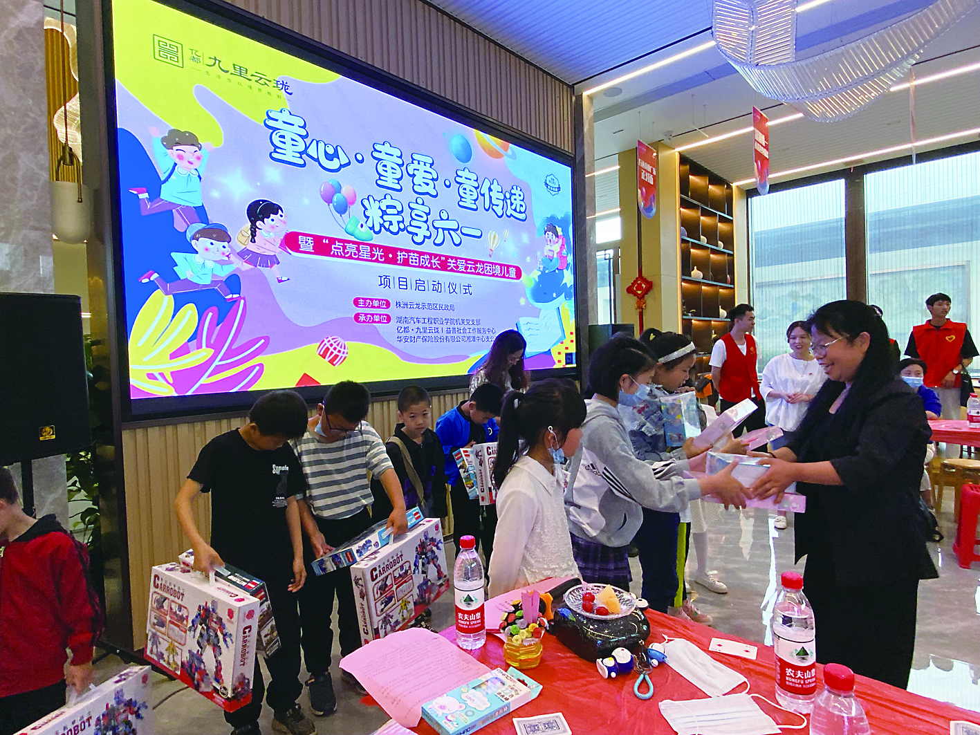 当天,湖南汽车工程职业学院机关党支部“点亮星光·护苗成长”关爱云龙困境儿童项目同时启动,为在场的21名困境儿童发放精美的文具、玩具等儿童节礼物。今后,志愿者将对辖区困境儿童开展长期一对一结对帮扶。