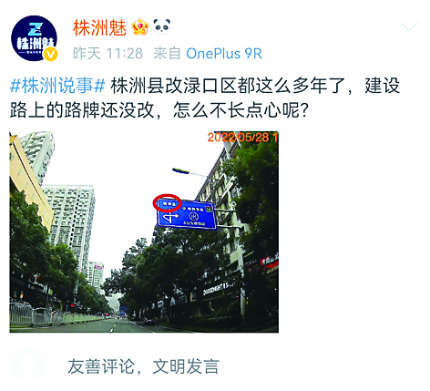 近日,有网友在微博上爆料,株洲县撤县并区多年,但渌口区建设路的路牌并未做出相应修改,目前依然标记为“株洲县”。