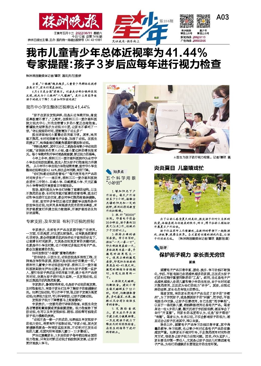 我市儿童青少年总体近视率为41.44% 专家提醒:孩子3岁后应每年进行视力检查