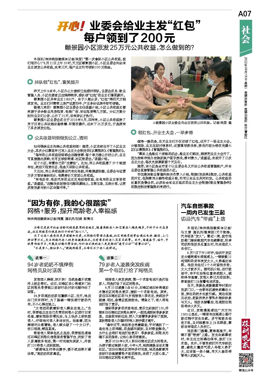 开心!业委会给业主发“红包”每户领到了200元