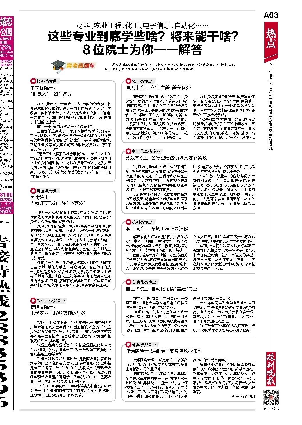 这些专业到底学些啥?将来能干啥?8位院士为你一一解答