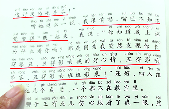 “也不知道这些书籍是怎么过审的,这样的读物简直就是‘毒物’。”吴女士说,她对儿童读物的疑虑由此开始,后来又在多个不同的校园读物中,找到了各种不同的问题。