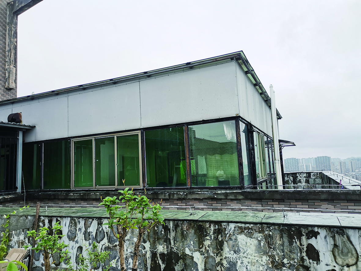 ▲金色地标楼顶加建的房屋。记者/姚时美 摄