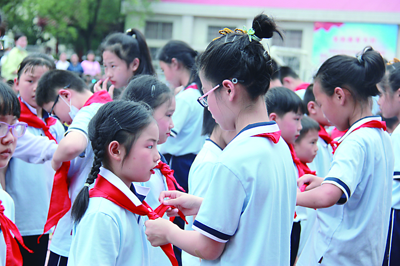 在“六一”儿童节来临之际,石峰区株洲市光明学校的100多名一年级学生戴上红领巾,光荣加入中国少年先锋队。
