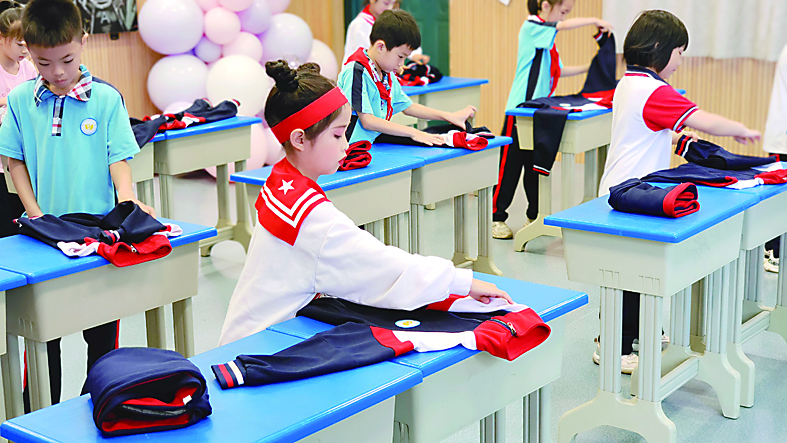缝针走线、收纳达人、巧系鞋带、蔬果当家……5月31日,天元区滨江小学校园内,一场“劳动趣体验,童年无极限”劳动技能游园闯关活动正在如火如荼地进行中。