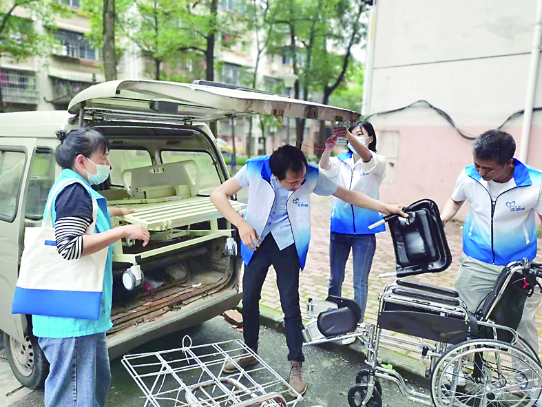 ◀志愿者们将护理床、轮椅运到了天琪家的楼下。 志愿者供图