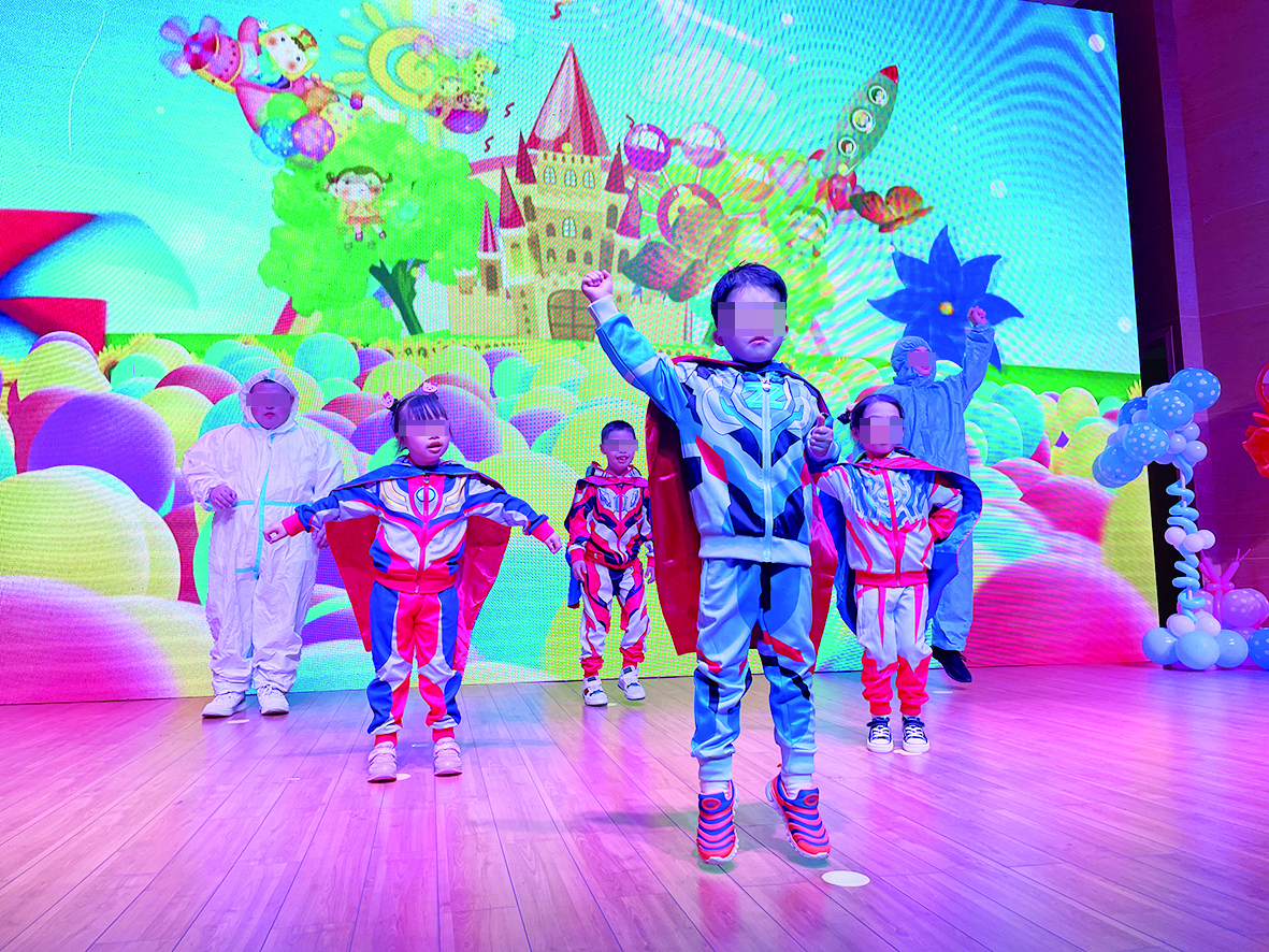▲孩子们在台上表演节目。 记者/谢嘉 摄