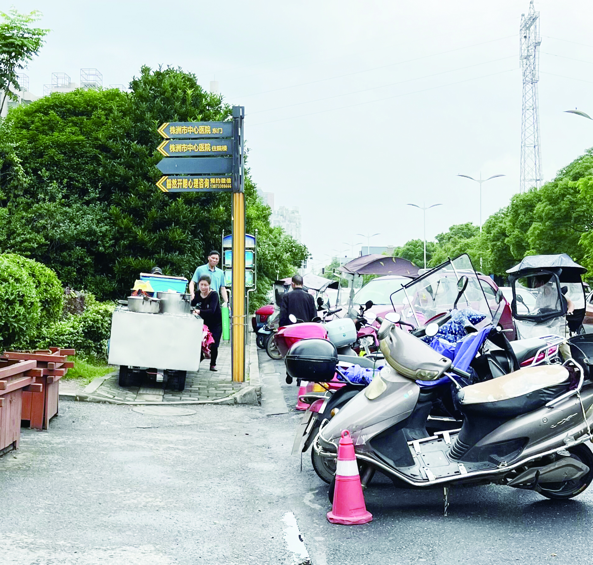 2日早上9时左右,位于天元区滨江南路的市中心医院出入口,人行道上的2个餐饮摊同时收摊。