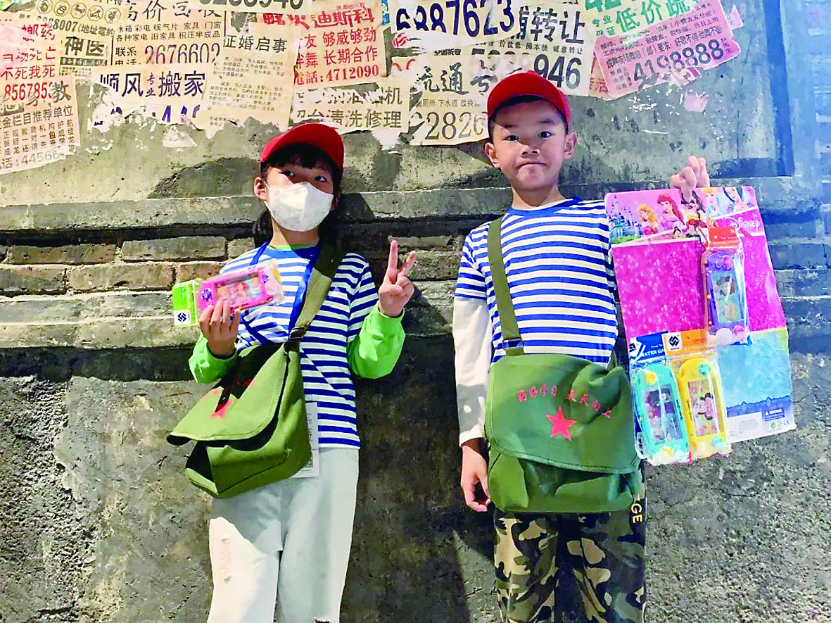 生日在5月的校园记者,当日和父母一起穿上八十年代的服装玩起了“穿越”:跳房子、滚铁环、转陀螺、玩“超级玛丽”……看,对面走来一群兜售老冰棍、喔喔奶糖、咪咪虾条、橘子汽水的校园记者,他们手中的怀旧小零食让人垂涎欲滴。