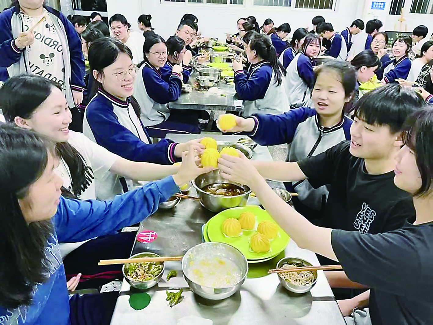菜包、肉包、豆沙包,包你“高中”,煎蛋、卤蛋,五香蛋,弹无虚发。市十三中每周在晚自习期间为高三学子加一顿样式丰富配餐合理的免费夜宵。让学生们能放松心情、缓解压力,有足够的精力与体能备战高考。