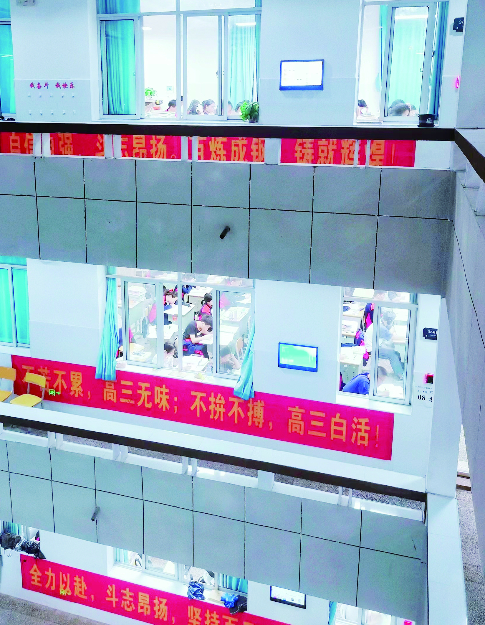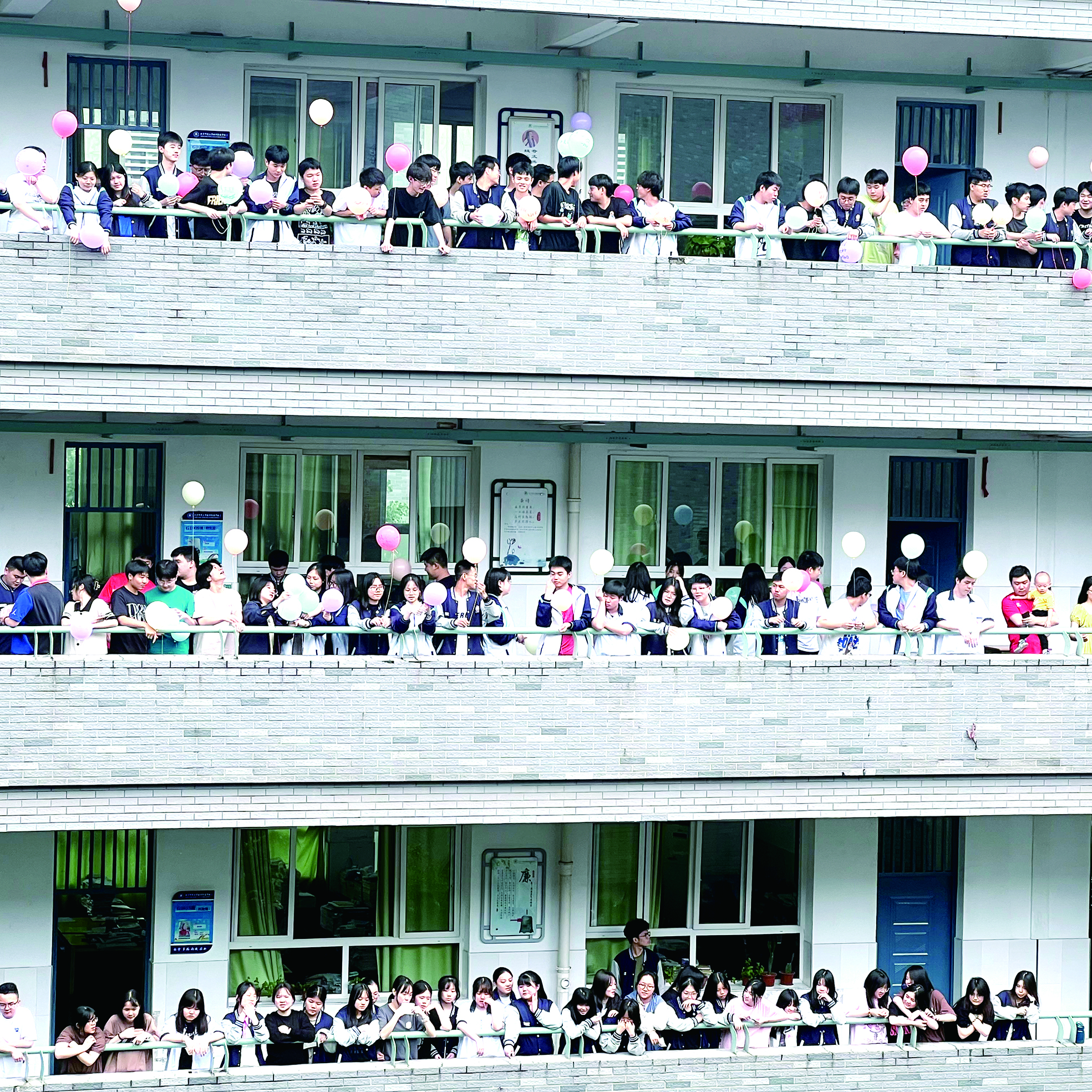 ▲北师大株洲附校高中部举行“喊楼”仪式,为高三学生加油鼓劲。 记者/孙晓静 通讯员/马冰 摄