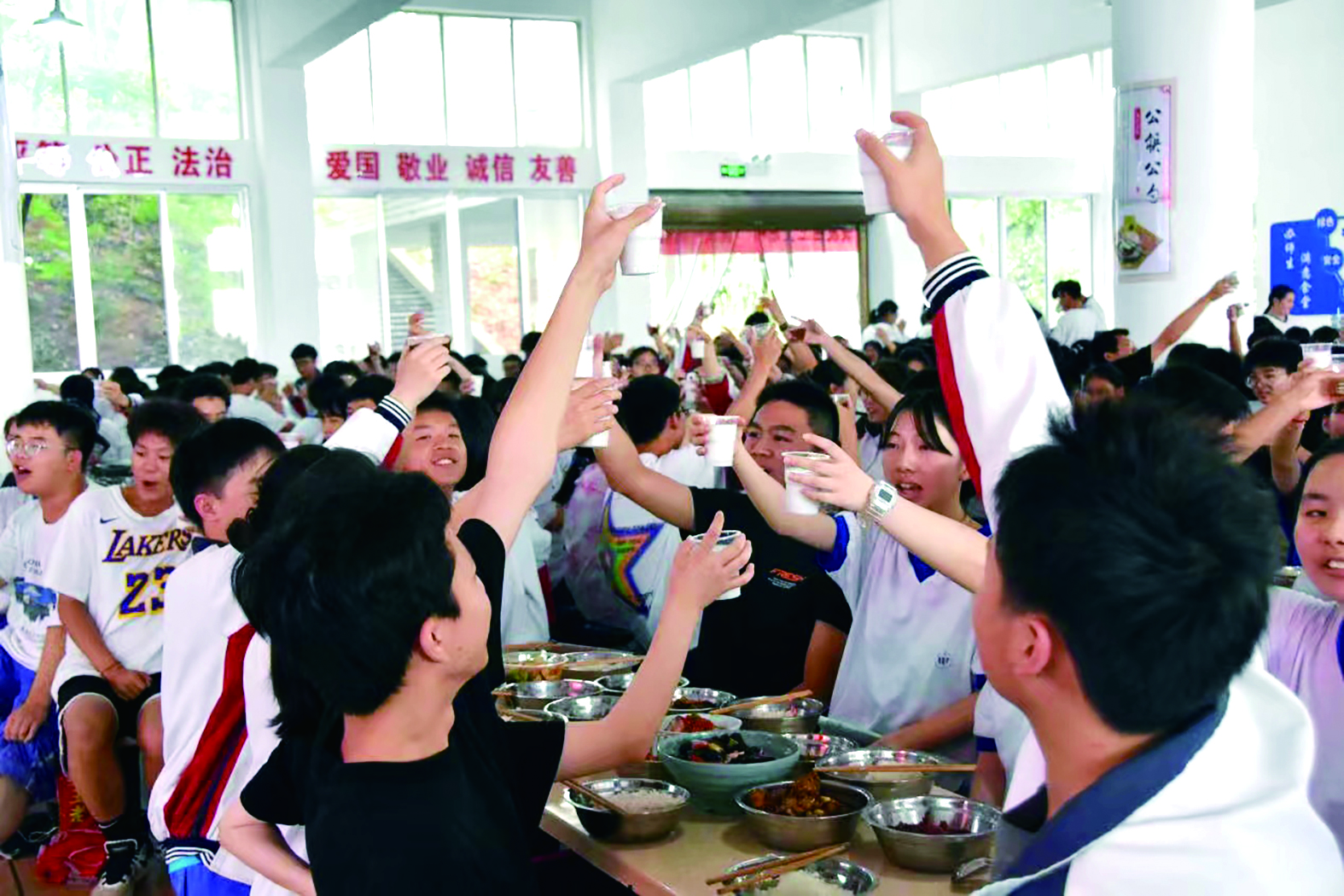▲渌口区五中师生共同举杯,为青春喝彩,为高考加油。记者/谭筱 摄