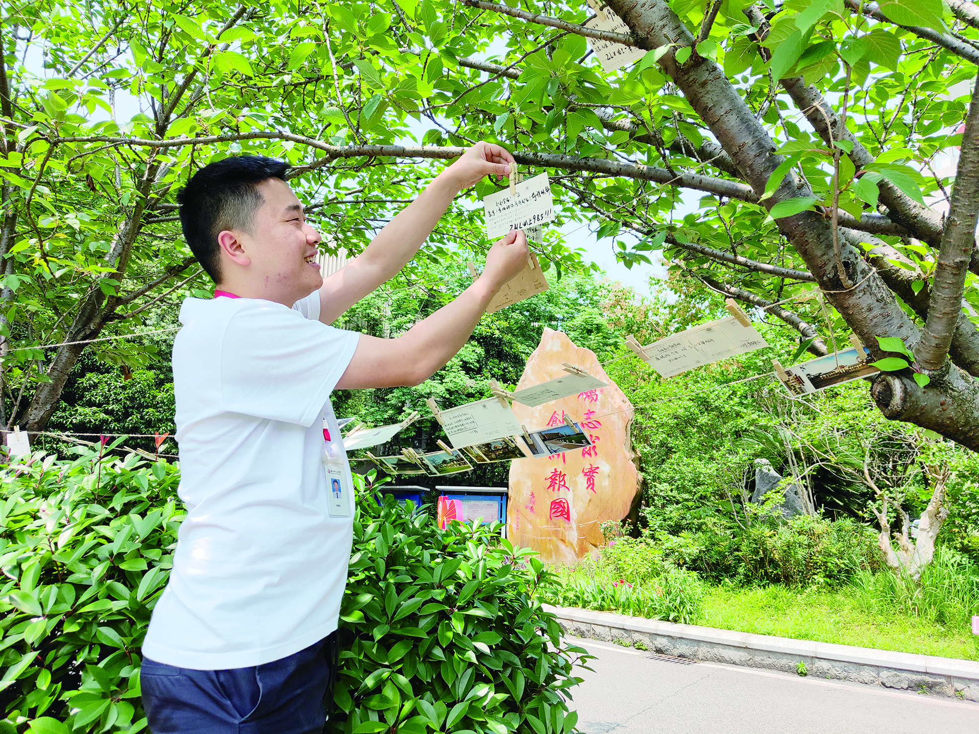 ▲九方中学的老师们把对学生的祝福挂在树上,“希望你们每个人都顺顺利利。” 记者/孙晓静 通讯员/李璐 摄