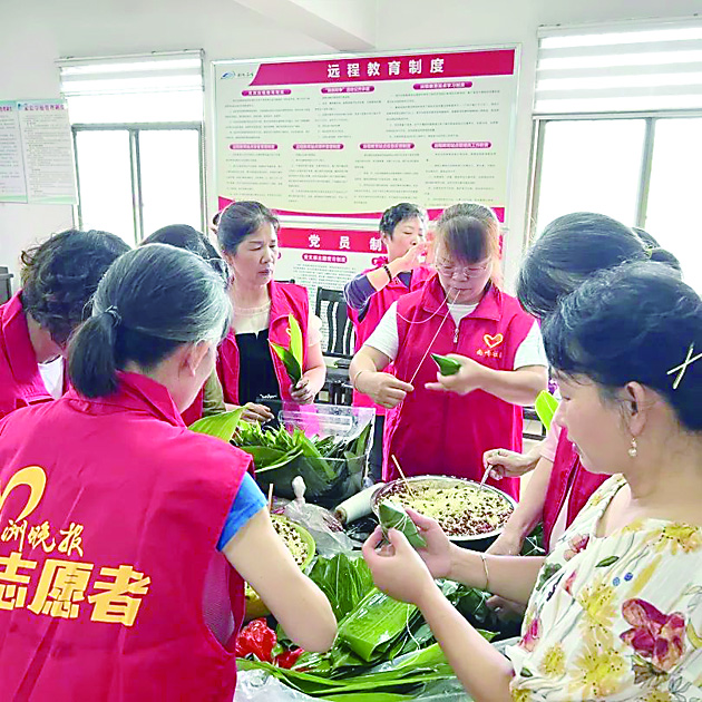 ▲志愿者们包粽子。 志愿者供图