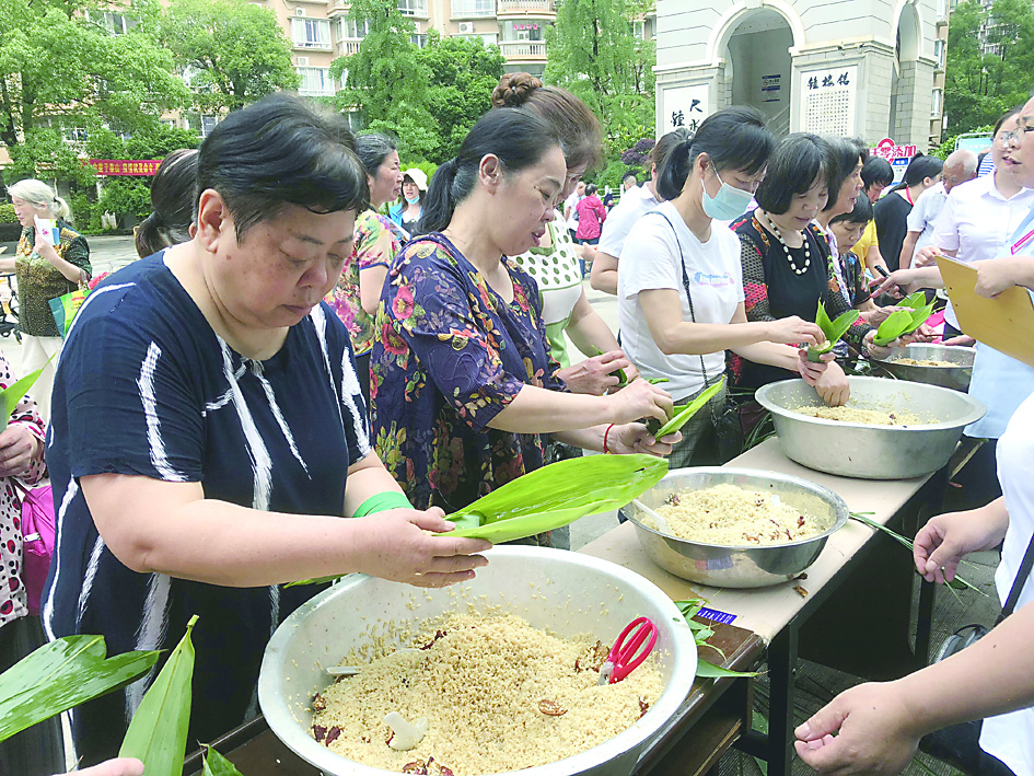 ▲端午节前,社区、物业联合小区业委会,组织湘银小区居民一起包粽子。 (受访者供图)