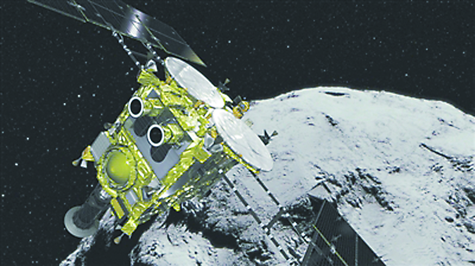 ▲日本宇宙航空研究开发机构的小行星探测器“隼鸟2号”接近其目标小行星“龙宫”。 日本宇宙航空研究开发机构供图