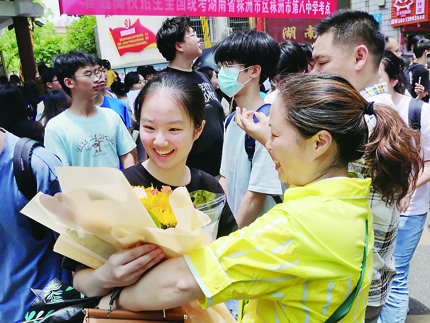 考场外,不少家长还带来了鲜花,为孩子送上美好的祝福和大大的拥抱。