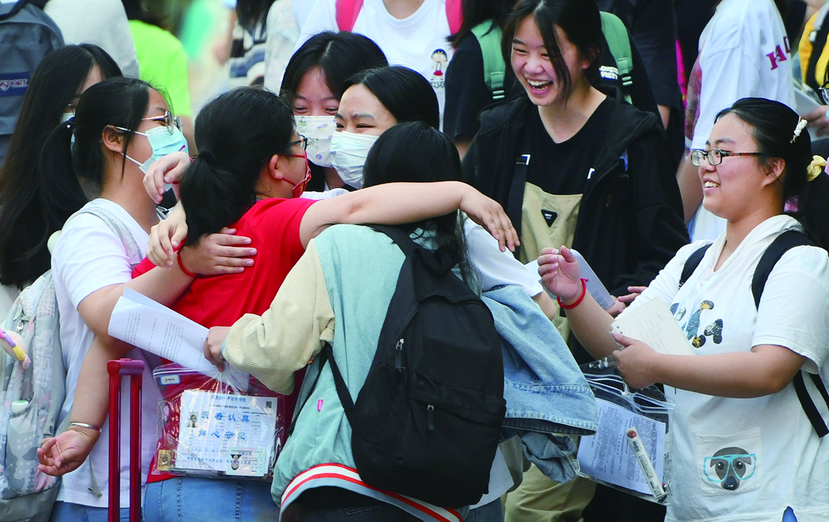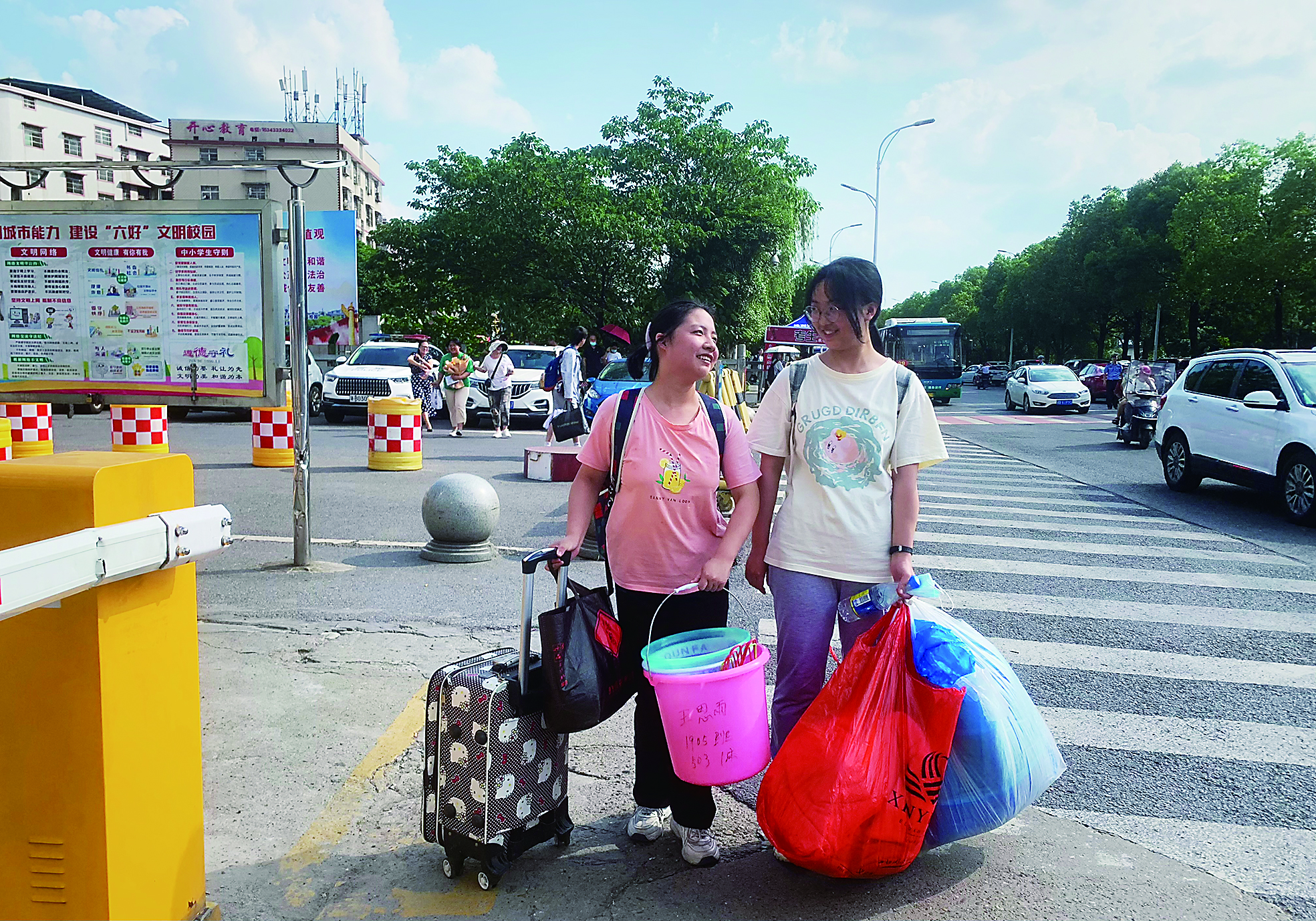 ▲“我们考完了!”两名考生把行李打包带回家,今秋将奔赴青春的下一站。记者/谭筱 摄