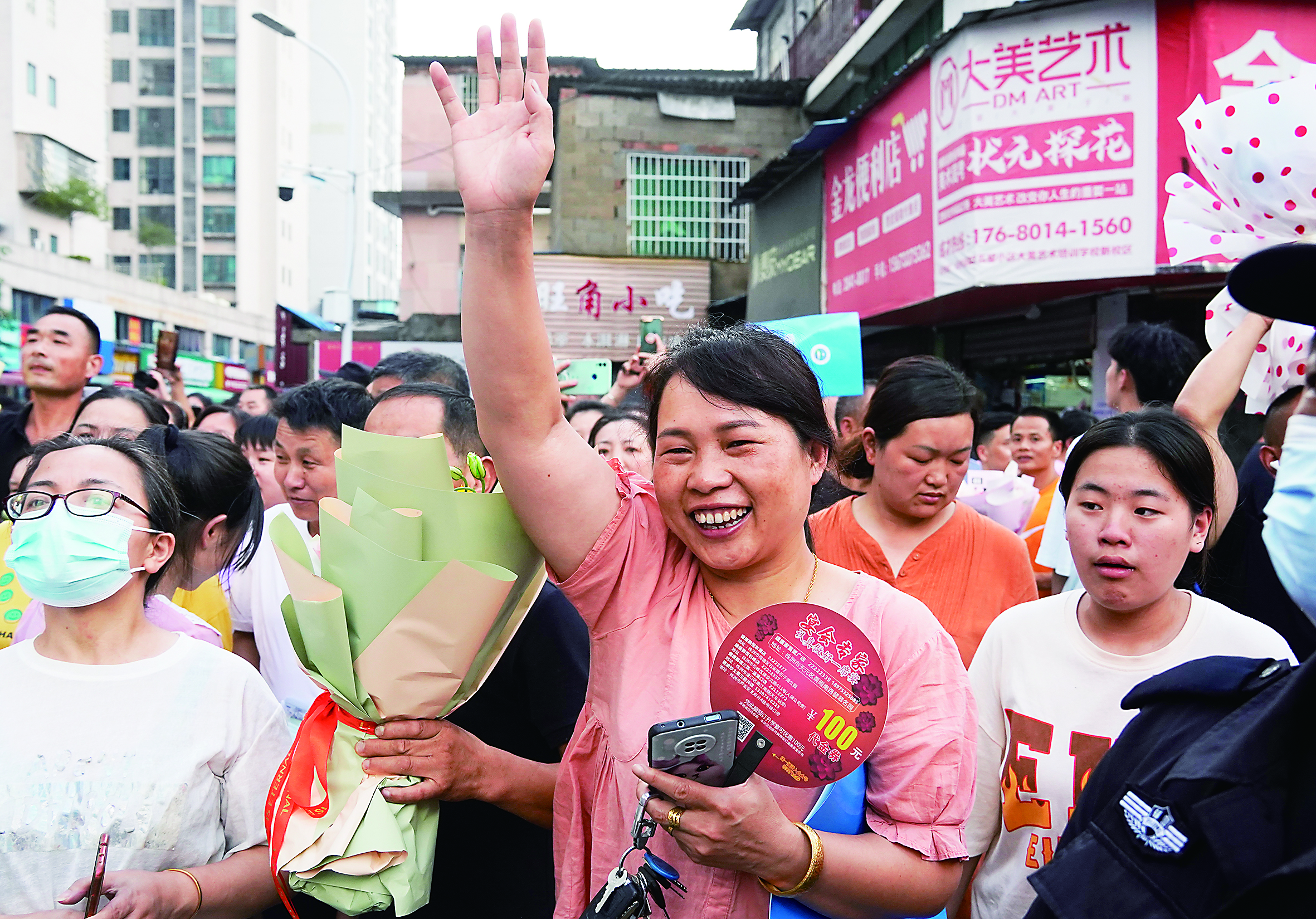 ▲家长满脸笑容,挥手迎接自己的孩子。记者/刘震 摄