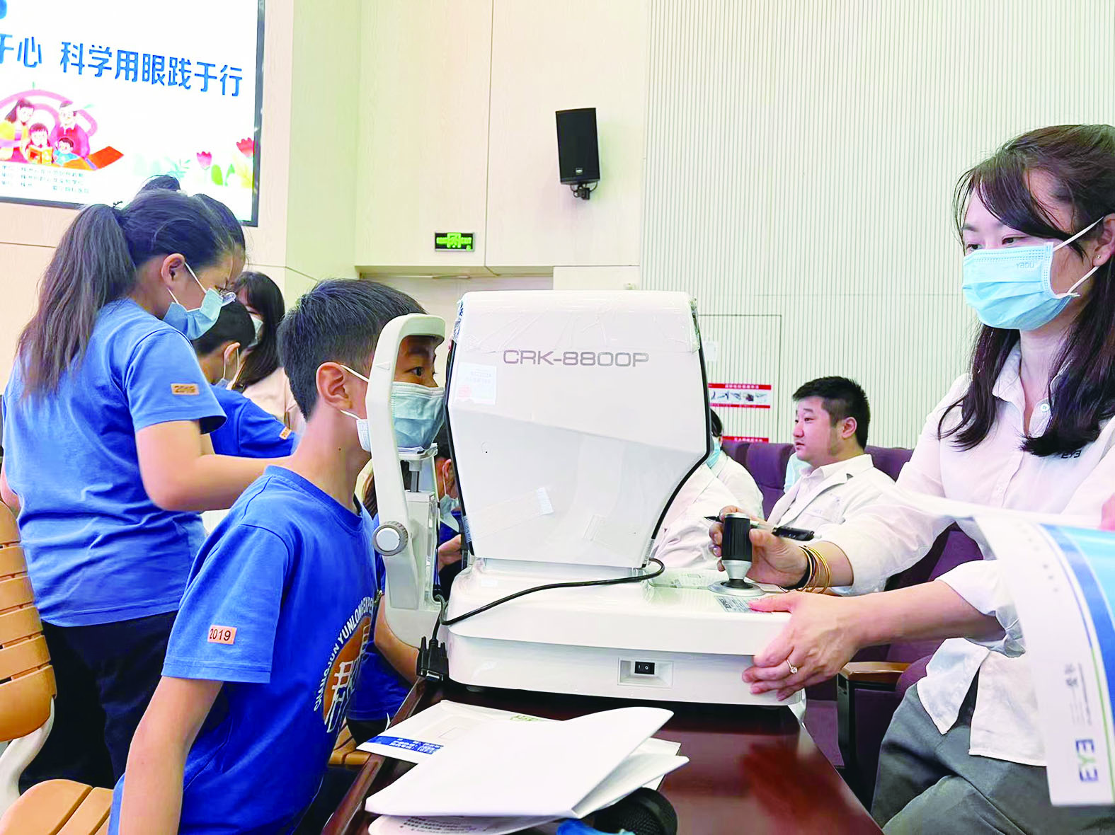 ▲医生为孩子进行视力检查。记者/谭筱 摄