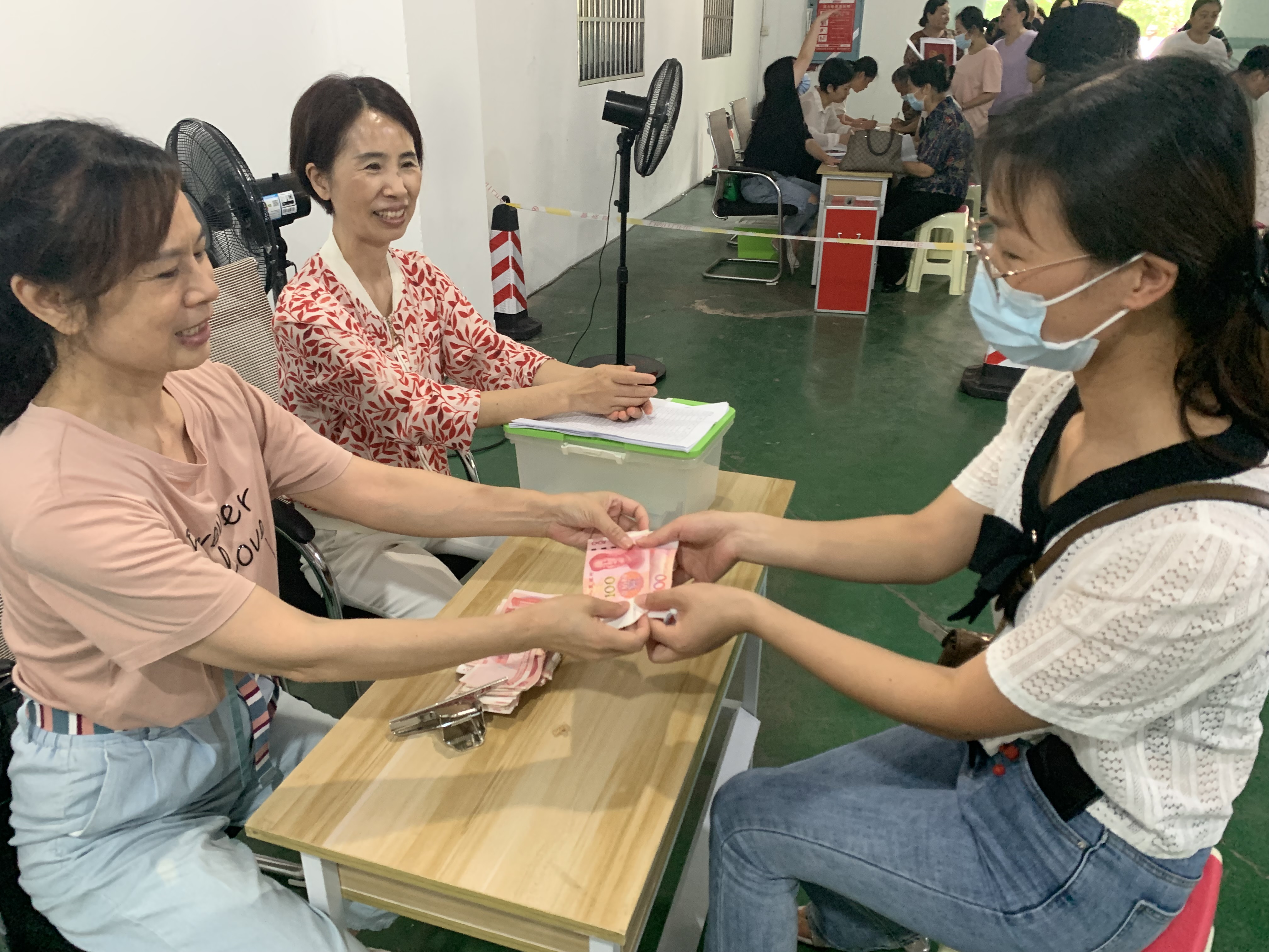 昨天上午9点半,小区办公大楼前已经排好两队,业委会成员、物业管理人员、小区志愿者正在维持秩序,排队领“红包”的业主们喜笑颜开。