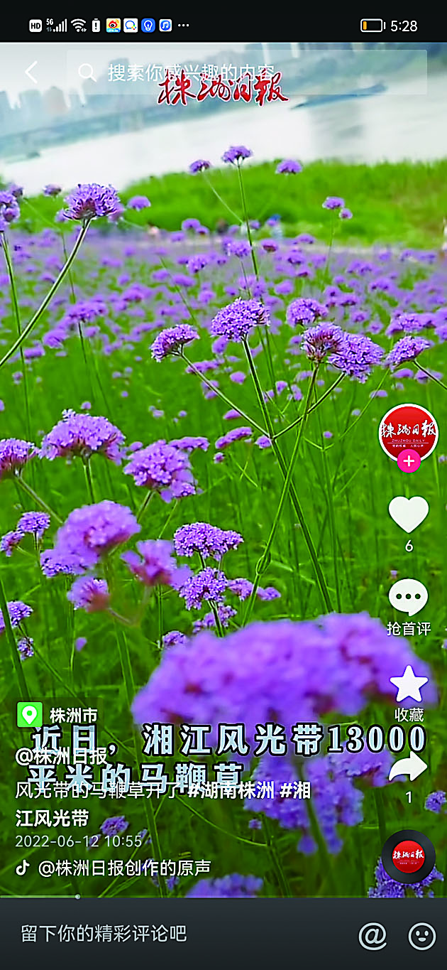 在许多人的眼中,紫色代表着浪漫和神秘,近日,株洲湘江风光带的马鞭草悄然绽放,紫色的花朵随风摇曳,唯美浪漫,快约上朋友,一起来花海打卡吧!