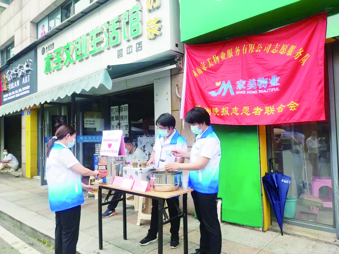 ·6月9日上午,株洲晚报志愿者联合会湖南家美物业志愿服务队的党员志愿者们,在株洲市第四中学校门考点附近,设置“爱心助力高考志愿活动”服务站,为广大考生、送考司机、家长、现场维持秩序的公安人员等服务,提供绿豆粥、菊花凉茶等饮品和藿香正气水、创可贴、云南白药、清凉油等常用药品。高考三天,家美公司还在其服务小区开展“静音行动、助力高考”活动,确保考生能以饱满的精神状态迎考。(株洲晚报融媒体通讯员/彭程 记者/郑炜青)