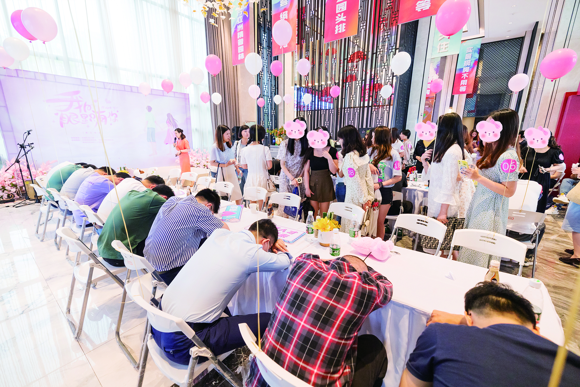 ▶一对一交流环节,男生不动,女生自由选择交流对象。