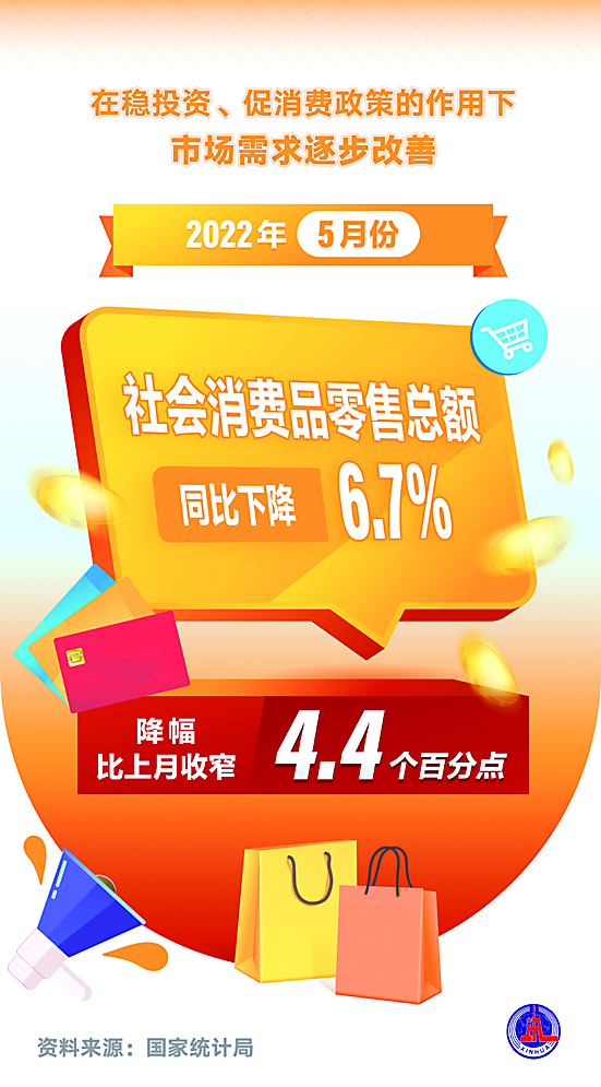 付凌晖说,4月份受多地疫情散发的影响,经济主要指标出现下降,5月份疫情防控向好,生产需求出现积极变化,但是仍有部分指标同比下降。6月份,随着一揽子稳增长政策措施的落地见效,经济运行有望进一步改善。