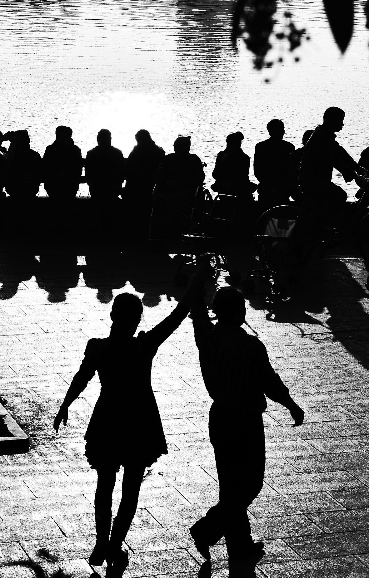 ①神农公园,阳光下的舞者成了一幅韵味十足的剪影。