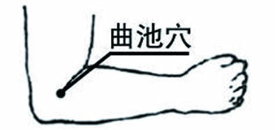 按揉曲池穴(屈肘成直角,当肘弯横纹尽头处)。适当用力按揉穴位1分钟,以有酸胀感为佳,可调节脏腑、活血止痛。