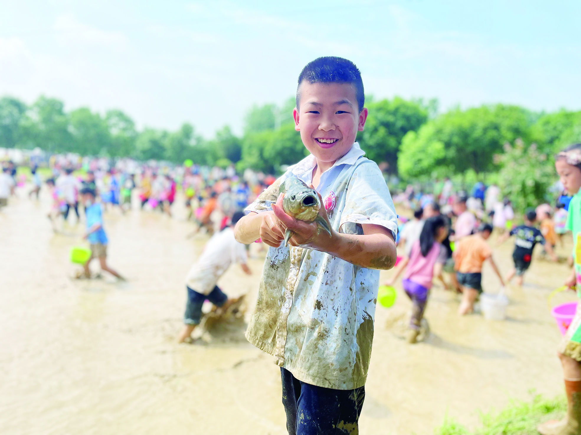 ◀趣味摸鱼让孩子们快乐无比。 记者/刘文 摄